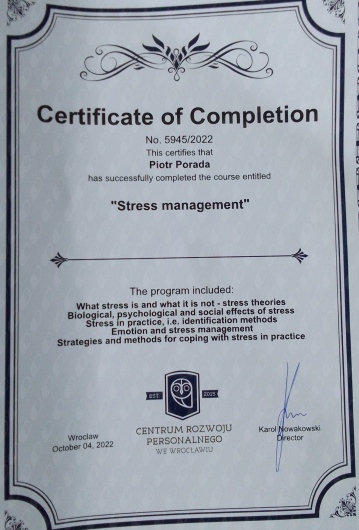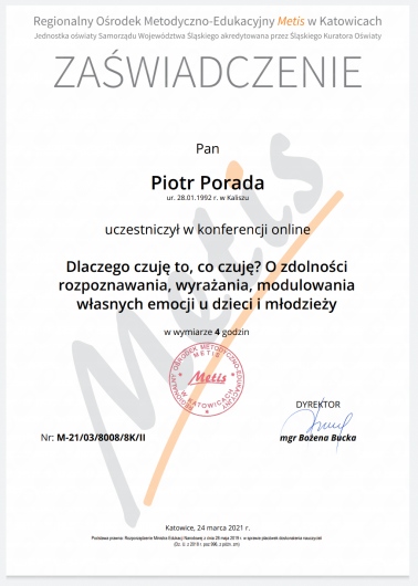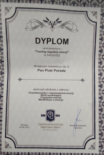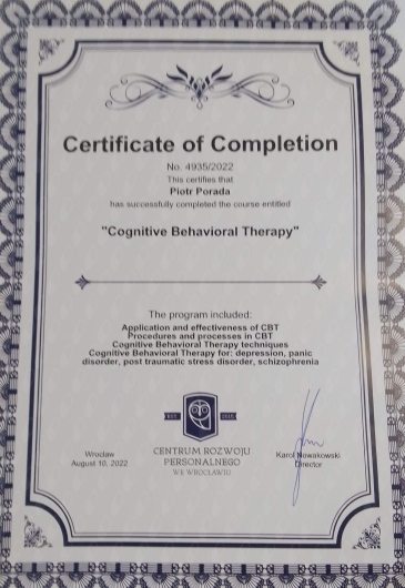 Piotr to cudowny człowiek i psycholog, do którego z pewnością wrócę, jeśli zajdzie taka potrzeba. Piotrze, dziękuję Ci z całego serca za wszystko, co dla mnie zrobiłeś. Twoja pomoc była dla mnie bezcenna!
