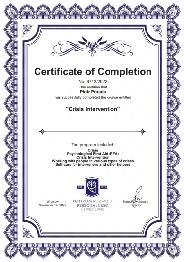 Cudowna osobowość! Wręcz magnetyczna i przepełniona wyrozumiałością… Już po pierwszej konsultacji odkryłam razem z Panem Piotrem obszary nad, którymi warto popracować by podnieść jakość mojego życia. Nie była to konsultacja wstępna tak jak to odbywa się w przypadku innych psychologów… padło wiele pytań, które dały do myślenia. Szukałam długo odpowiedniej osoby; znalazłam! Z całego serca polecam!