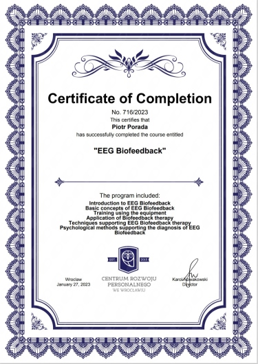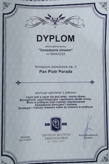 Bardzo polecam. Pan Porada stwarza ciepłą i swobodną atmosferę w której czuję, że mogę powiedzieć o wszystkim. Uwagi i spostrzeżenia których mi udzielił były bardzo trafne!