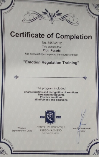 W końcu, po kilku terapiach trafiłam do Pana Piotra. To najlepszy terapeuta pod wieloma względami. Przede wszystkim wytłumaczył mi co tak naprawdę się dzieje i skąd się to bierze. Rozumiem co się ze mną dzieje i mogę nad tym pracować. Jest zaangażowany i zawsze punktualny. Nie ocenia, nie mówi, ze muszę to czy tamto, tylko wyjaśnia co mogę zrobić by było lepiej. Ja serdecznie polecam i jestem przeszczęśliwa, ze trafiłam do Pana Piotra. Spotykamy się online i mimo to, terapia jest na najwyższym poziomie. Słucha mnie, nie prawi morałów tylko Wszystko mi tłumaczy a ja ciężki kaliber jestem.